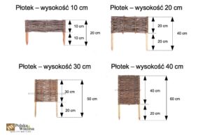 Wiklinowe płotki ogrodowe występują w różnych rozmiarach, co pozwala na elastyczność w projektowaniu ogrodu. Oto kilka popularnych rozmiarów dostępnych na rynku: