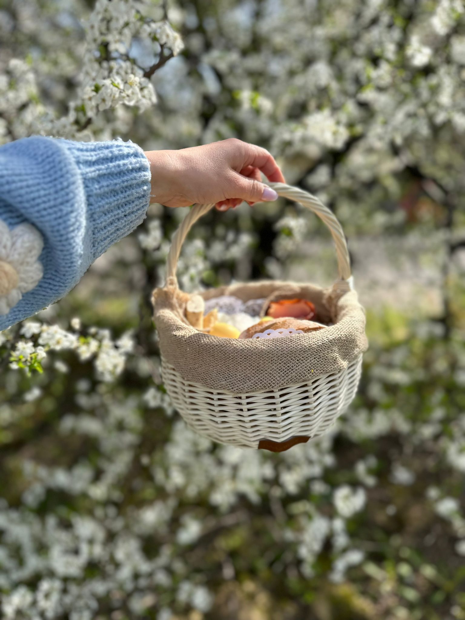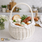| Zastosowanie | Koszyczek wiklinowy to idealny kosz do święcenia w czasie Wielkanocy. Dzięki swojej lekkości może być również używany przez najmłodszych. Kosz można przyozdobić ozdobną serwetką czy liśćmi bukszpanu – wszystko to wyraża głęboką świąteczną symbolikę, wartość chwil spędzanych z rodziną oraz dbałość o tradycję, łączącą pokolenia. Po świętach możesz wykorzystać koszyczek jako ozdoba stołu wyłożona wiosennymi kwiatami lub inne dekoracje w Twoim domu. |