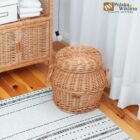 | Zastosowanie | Piękna i praktyczna pufa wiklinowa to doskonały dodatek do małego i stylowego wnętrza. Stanowi nie tylko idealne miejsce do przechowywania zabawek i małych skarbów, ale także jest doskonałym miejscem do siedzenia i odpoczynku. |