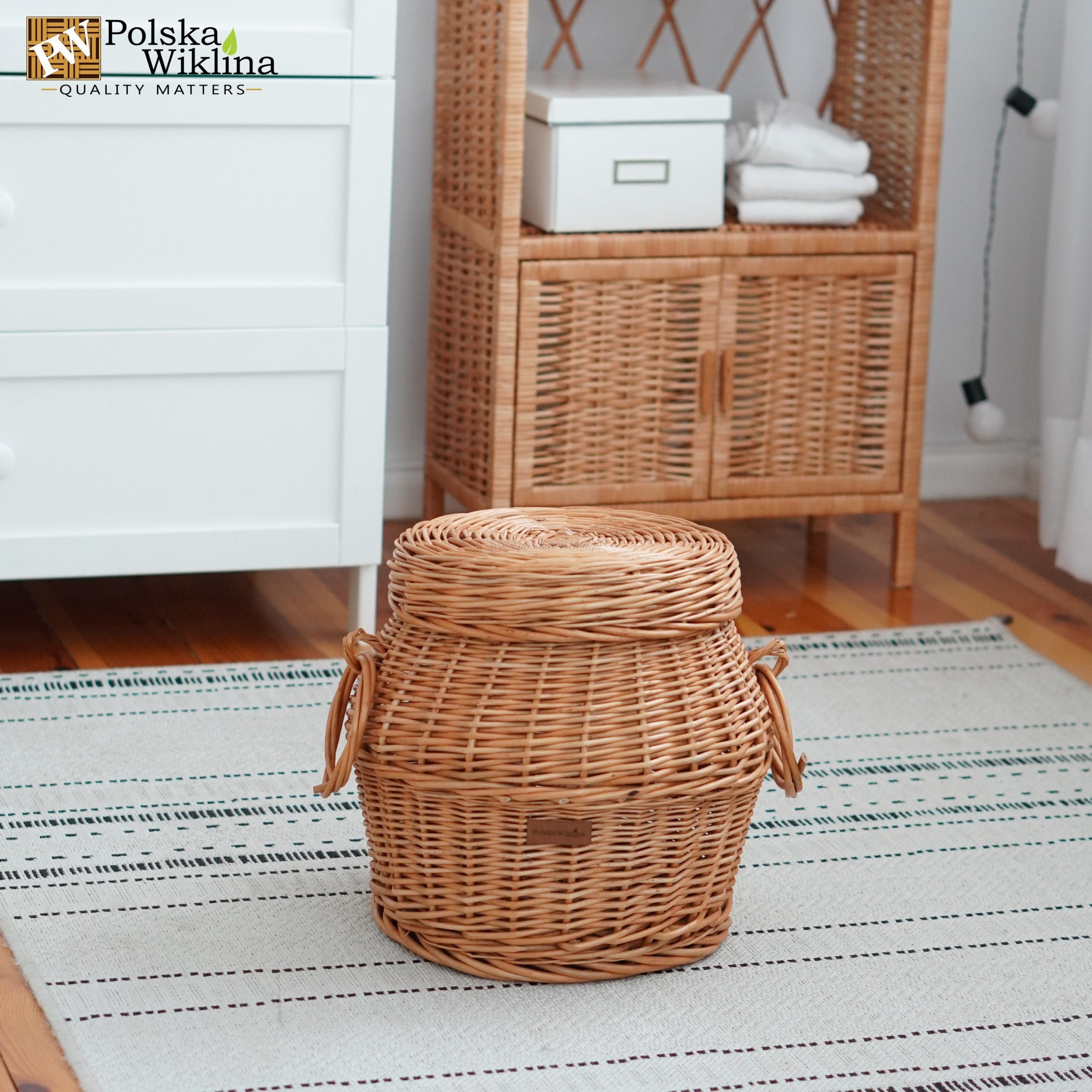 | Wykonanie | Pufa jest ręcznie wykonana z wikliny pochodzącej z polskich upraw. Została stworzony z dbałością o każdy detal. Kosz posiada ściągane wieczko. |