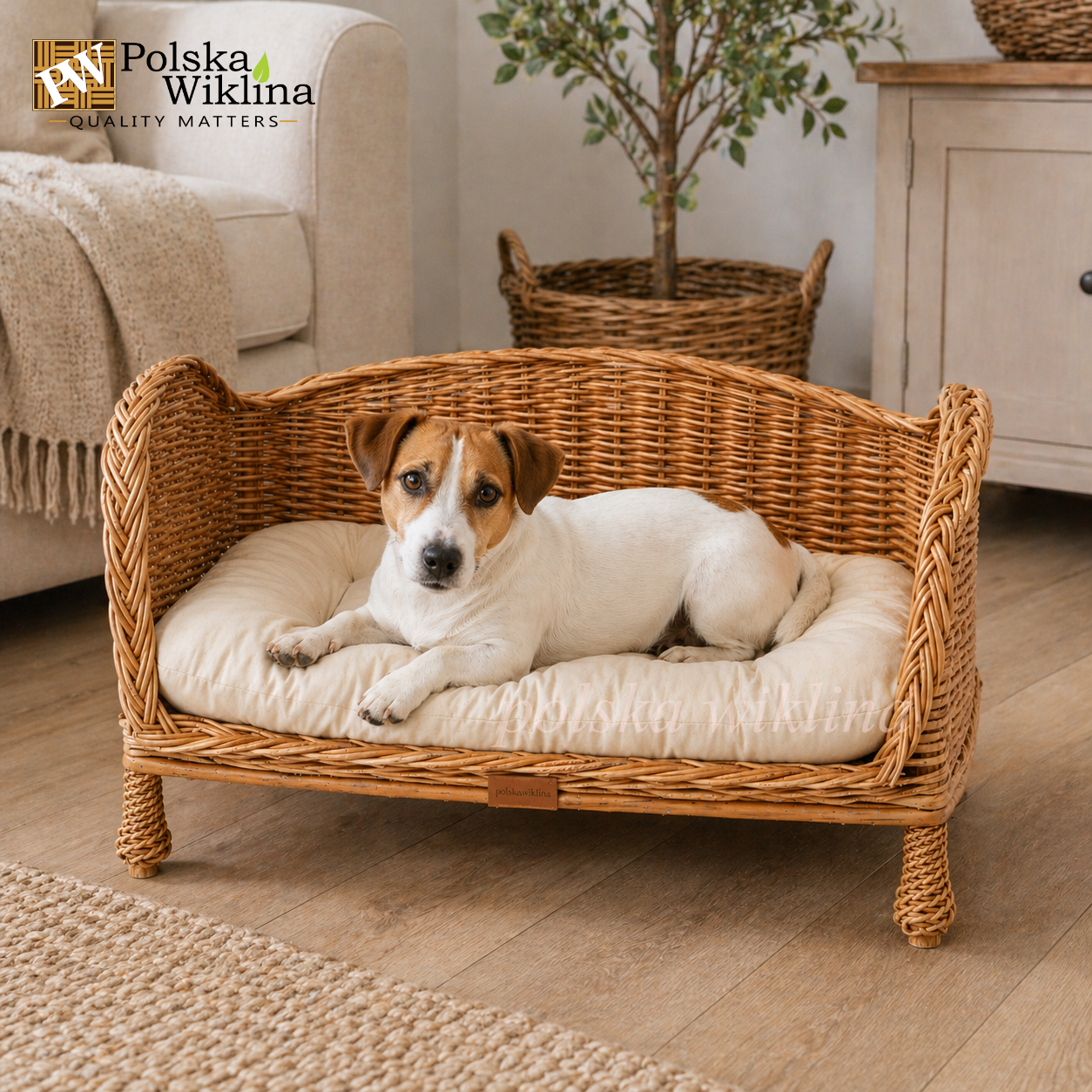 | Wykonanie | Legowisko jest ręcznie plecione z naturalnej wikliny pochodzącej z polskich upraw. Jest lekkie i w pełni ekologiczne, co gwarantuje bezpieczeństwo zwierzakowi. Legowisko posiada obniżoną przednią część, aby ułatwić wejście Twojemu pupilowi na legowisko. |