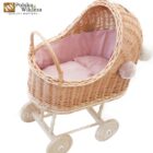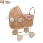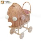 | Wykonanie | Wózek jest ręcznie pleciony z gałęzi wikliny pochodzącej z polskich upraw, został stworzony z należytą starannością, z dbałością o każdy detal; podwozie wykonane jest z drewna. Kółka reguluje się za pomocą śrubokręta, aby się kręciły. |