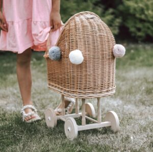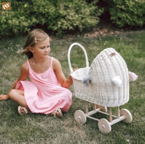Wózek wiklinowy dla lalek idealny na podwórko i do mieszkania